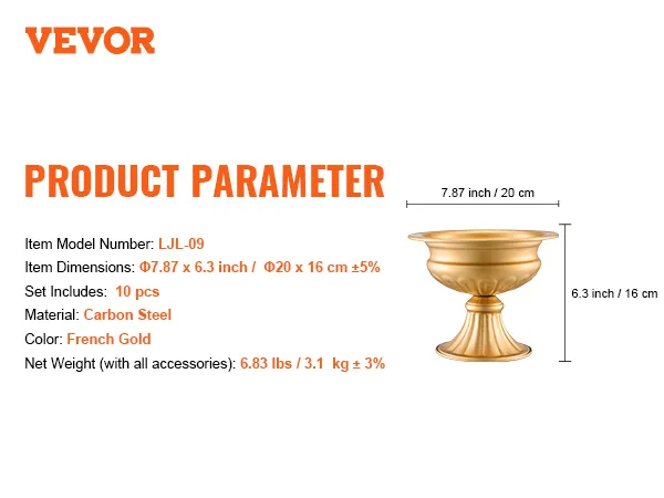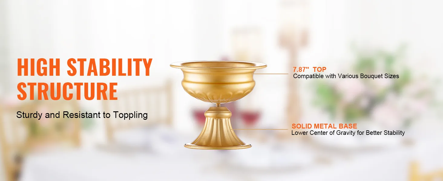 VEVOR 10-delige 16 cm hoge bloemenvaas voor bruiloften, metalen middelpunt voor bruiloften, gouden standaard voor bloemstukken voor tafels bij bruiloftsdiners, feesten, jubilea, ceremonies en verjaardagen