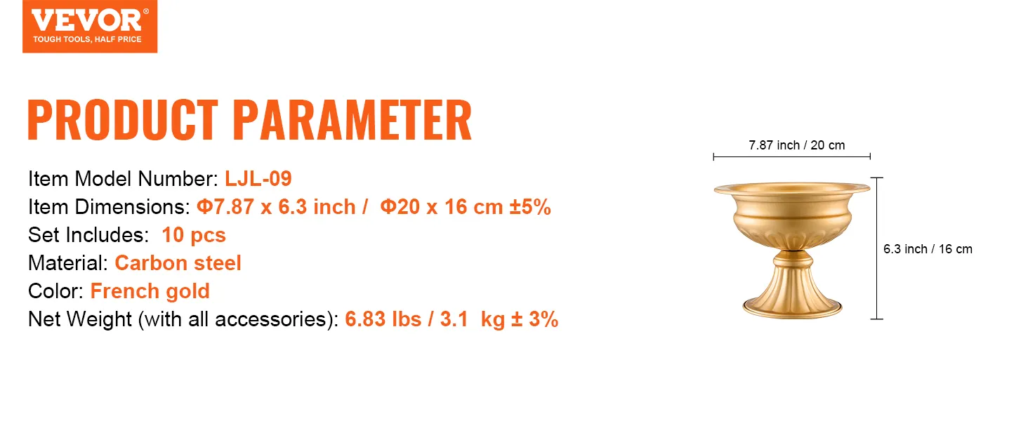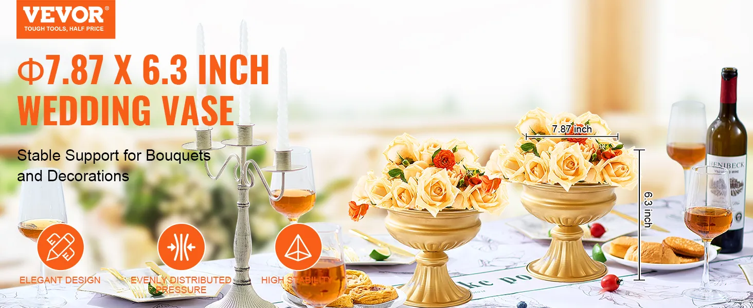Veelzijdige toepassing: versier deze bruiloftsdecoraties met prachtige boeketten of kunstbloemen. Het chique en stijlvolle ontwerp maakt hem perfect voor tafeldecoraties, vakantie-evenementen en het verfraaien van ruimtes zoals bars, hotels, cafés en woonkamers.