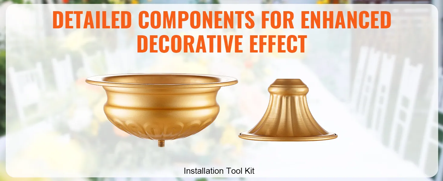 Eenvoudige montage: deze trouwvaas is ontworpen voor een probleemloze montage en vereist geen gereedschap. Volg gewoon de gegeven stappen en u kunt het binnen de kortste keren gebruiken.