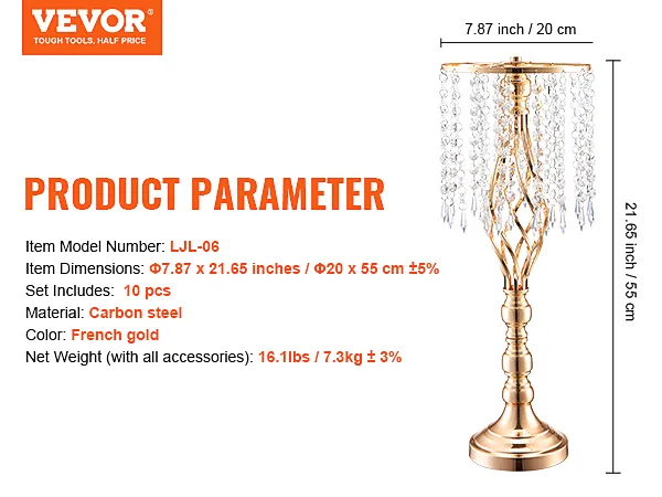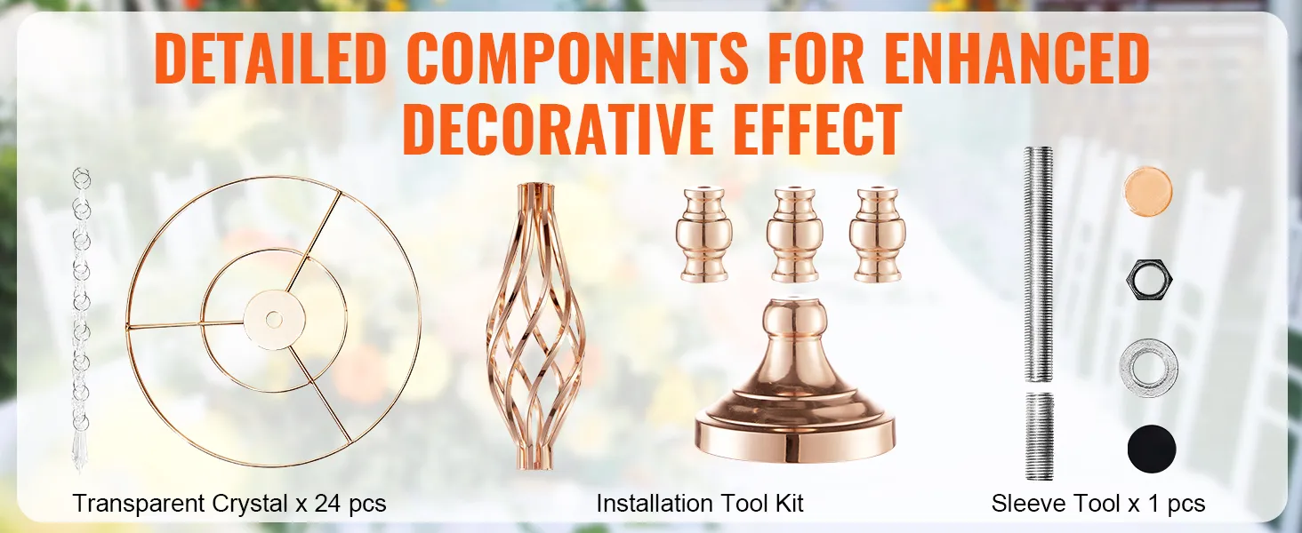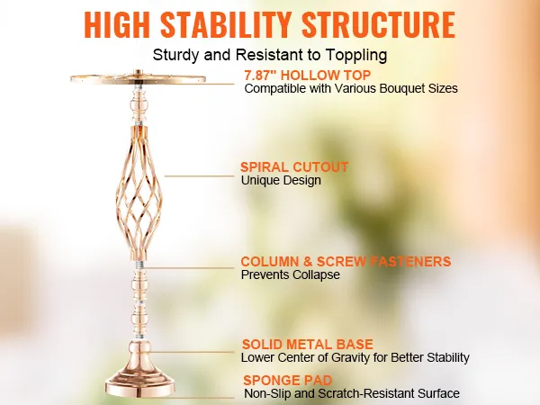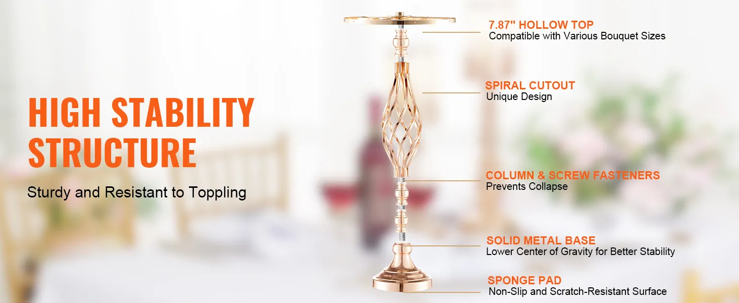 High-Quality Material: Made from premium carbon steel, this wedding floral stand is resistant to deformation and built to last. The surface is treated with a French gold electroplating process, providing a bright finish with vivid colors that are both attractive and easy to clean. It employs screw-fastened connections to prevent pin deformation, ensuring greater stability after assembly.