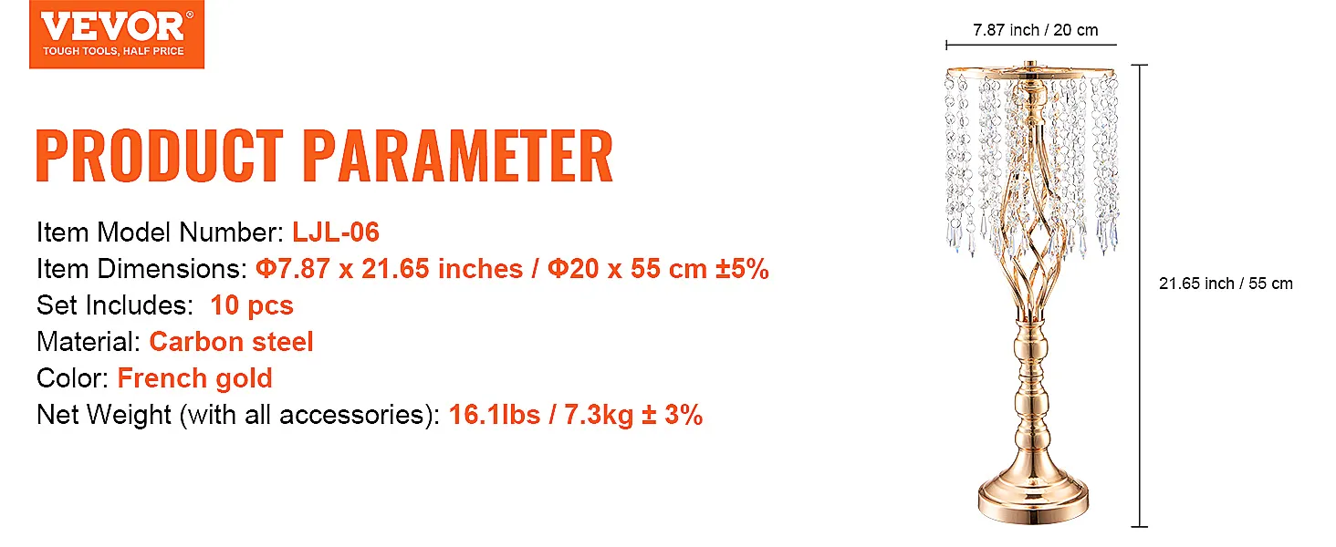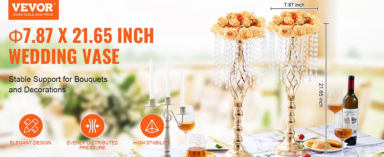 Easy Assembly: This wedding vase is designed for straightforward assembly, requiring no tools. Simply follow the provided steps, and you'll have it ready for use in no time.