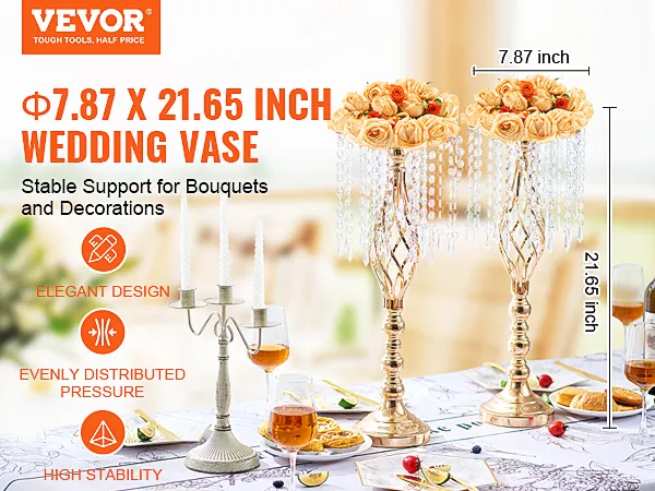 Compatible with Various Floral Arrangements: Standing at 21.65 inches tall, this gold vase will not obstruct views on dining tables, facilitating easy conversation. With a diameter of 7.87 inches, it is compatible with most floral arrangements available on the market, and its sturdy structure minimizes movement.