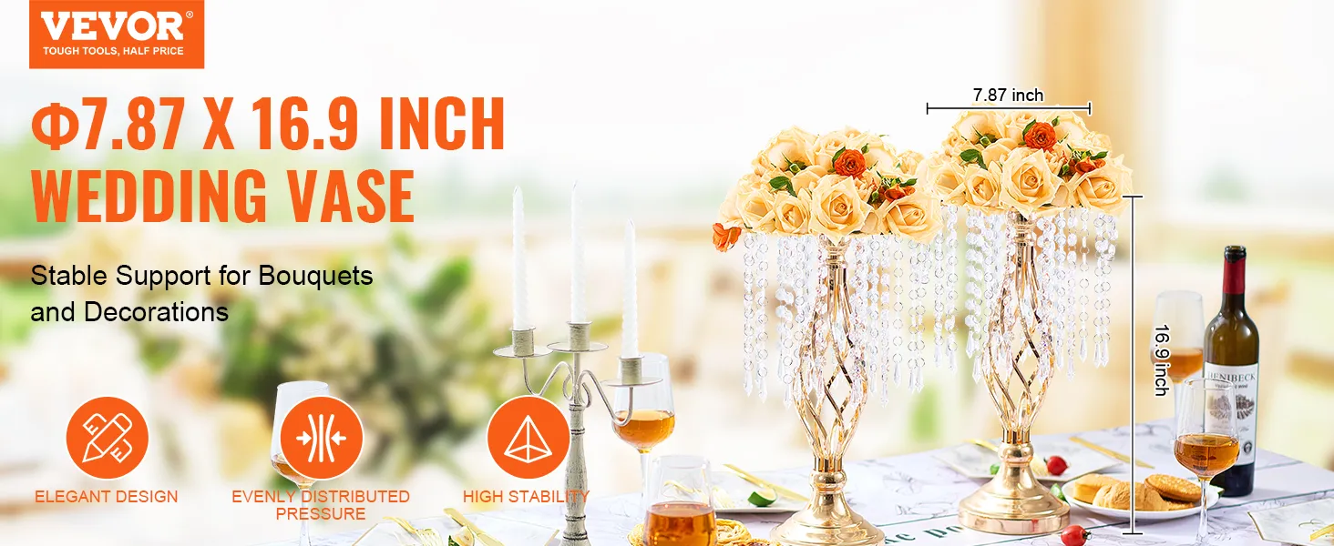 Veelzijdige toepassing: versier deze bruiloftsdecoraties met prachtige boeketten of kunstbloemen. Het voortreffelijke en stijlvolle ontwerp maakt het perfect voor tafeldecoraties, vakantie-evenementen en het verfraaien van ruimtes zoals bars, hotels, cafés en woonkamers.