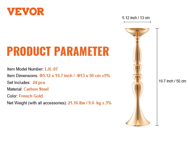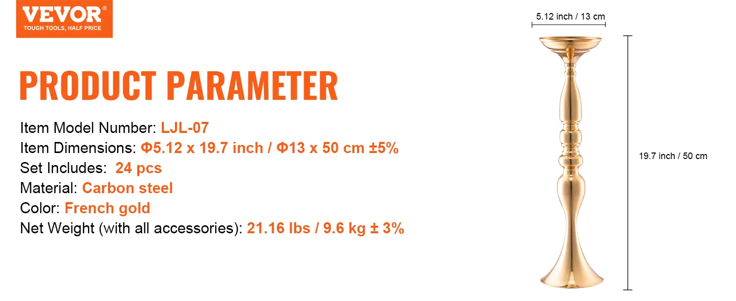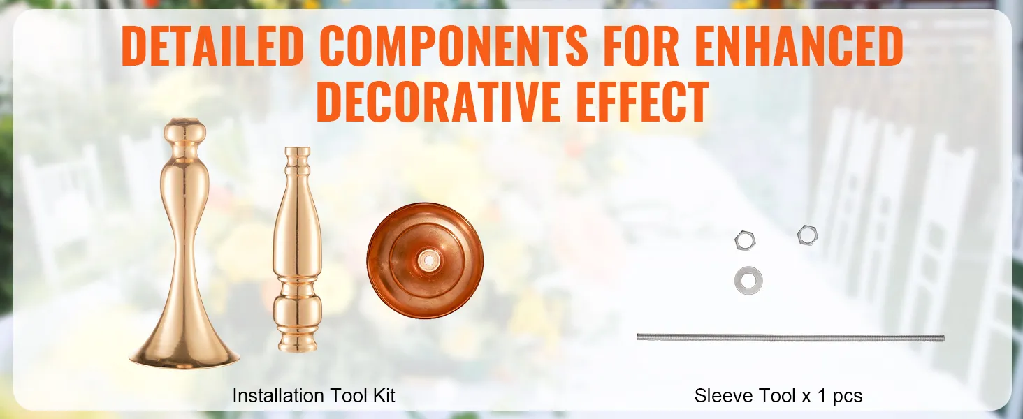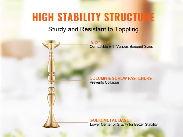 High-Quality Material: Made from premium carbon steel, this wedding floral stand is resistant to deformation and built to last. The surface is treated with a French gold electroplating process, providing a bright finish with vivid colors that are both attractive and easy to clean. It employs screw-fastened connections to prevent pin deformation, ensuring greater stability after assembly.
