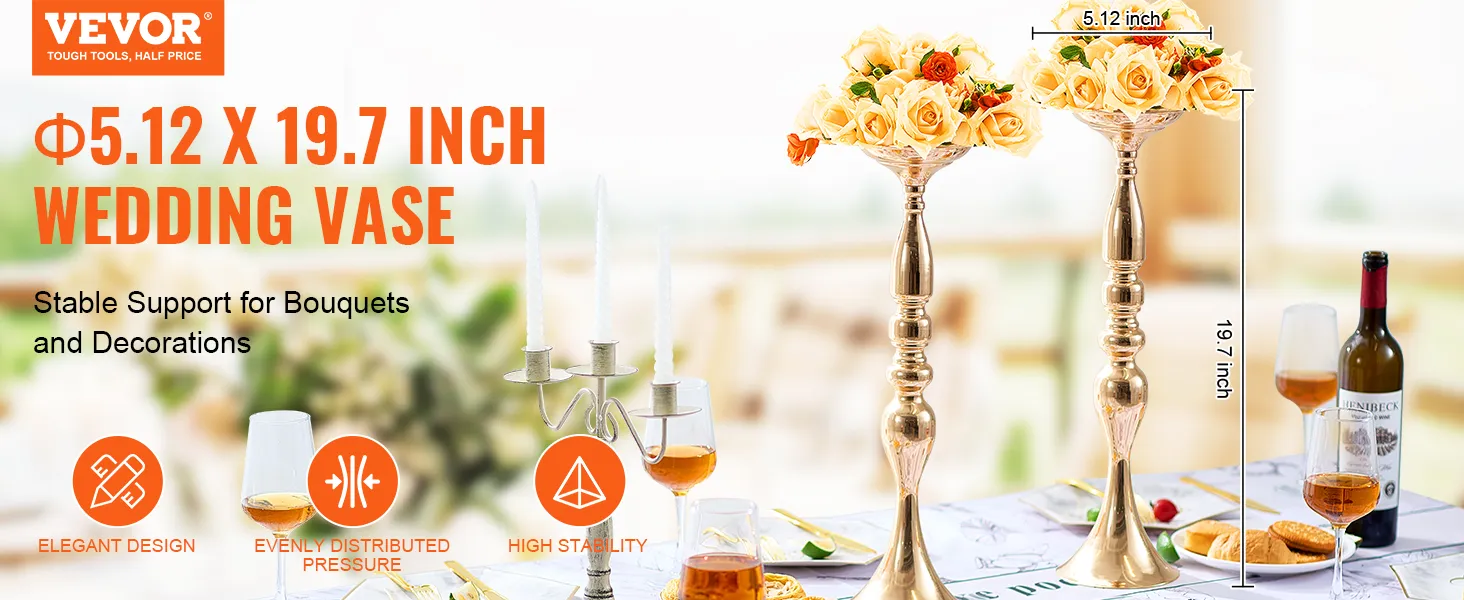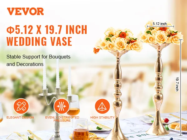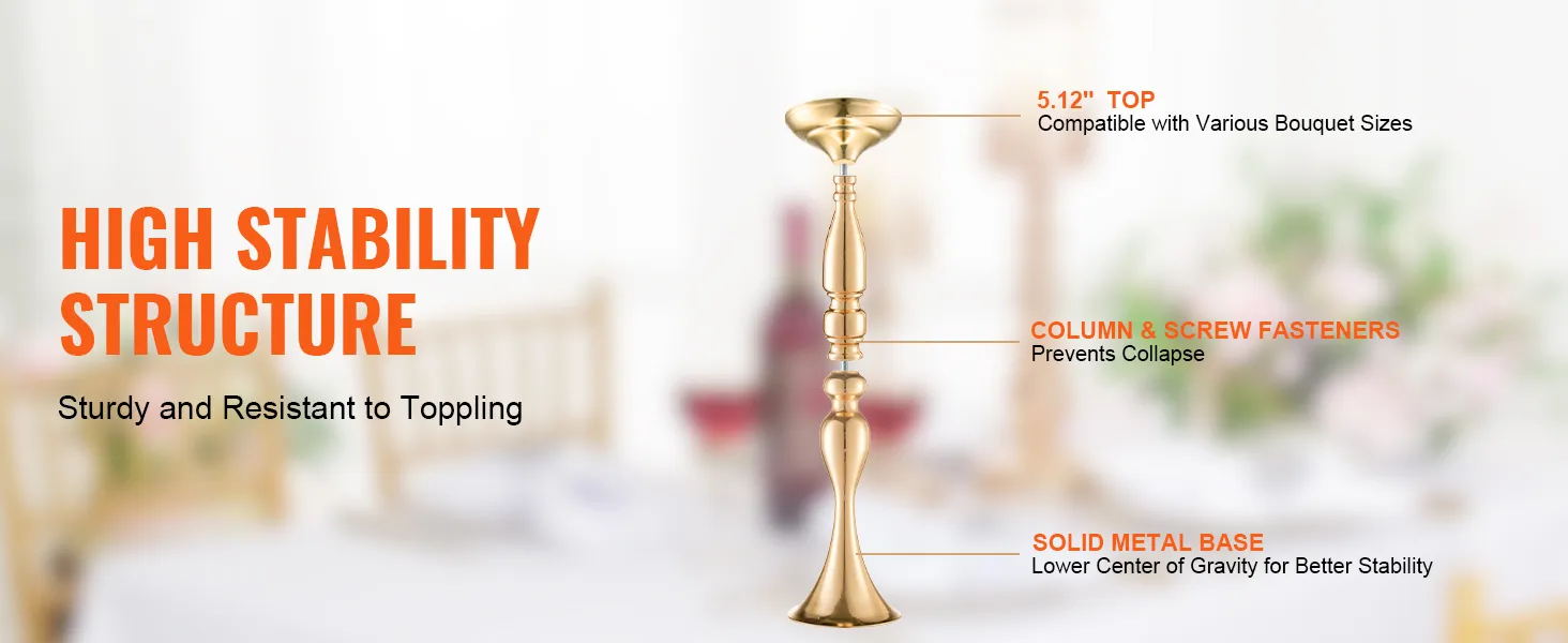 Elegant Design: This wedding vase features a classic candlestick design, offering a simple yet elegant appearance. It ensures even weight distribution for enhanced stability, allowing you to place multiple decorations without worrying about wobbling or falling.