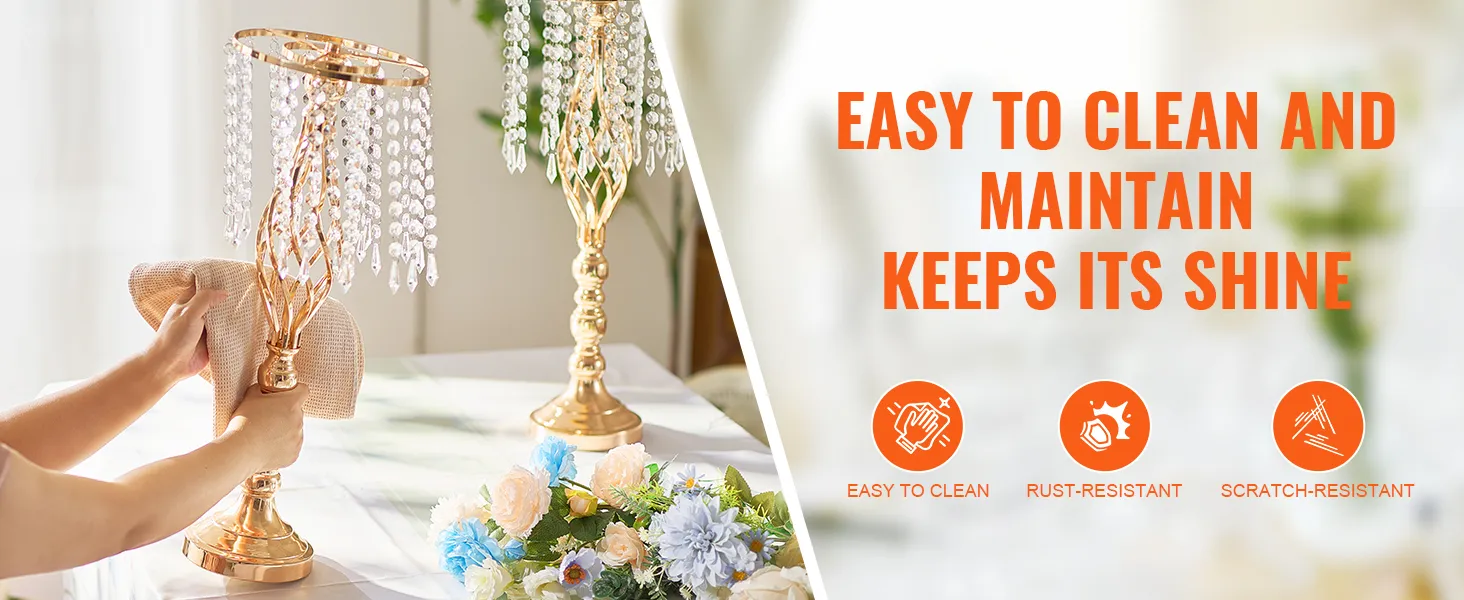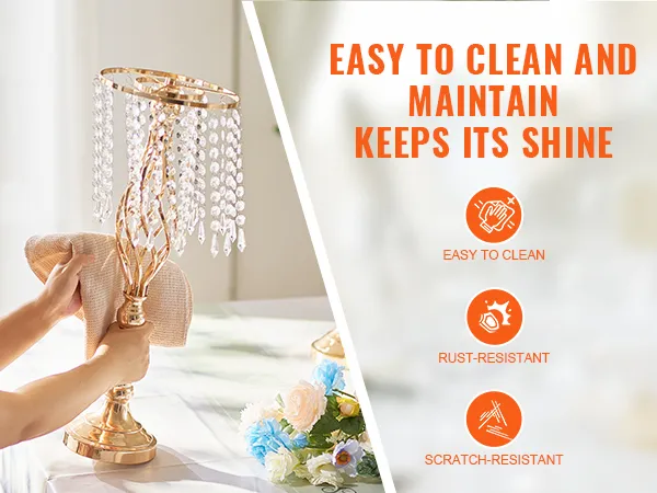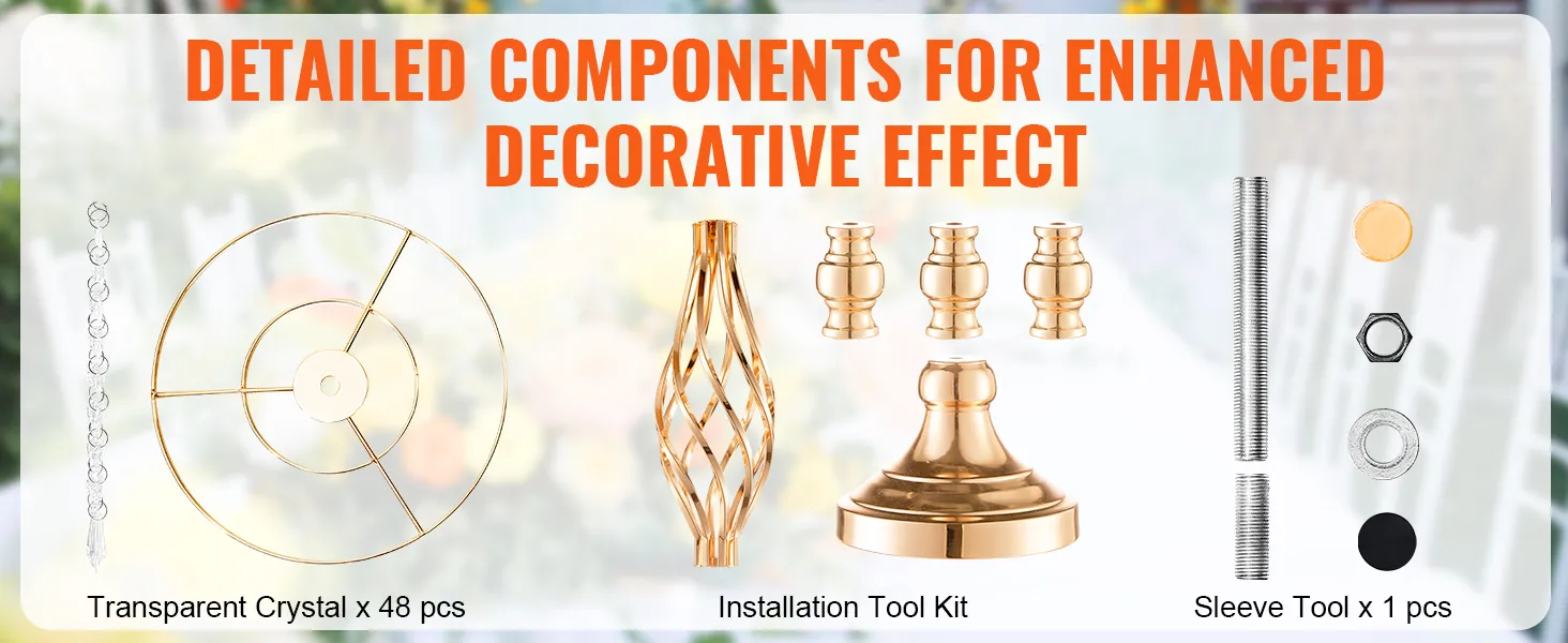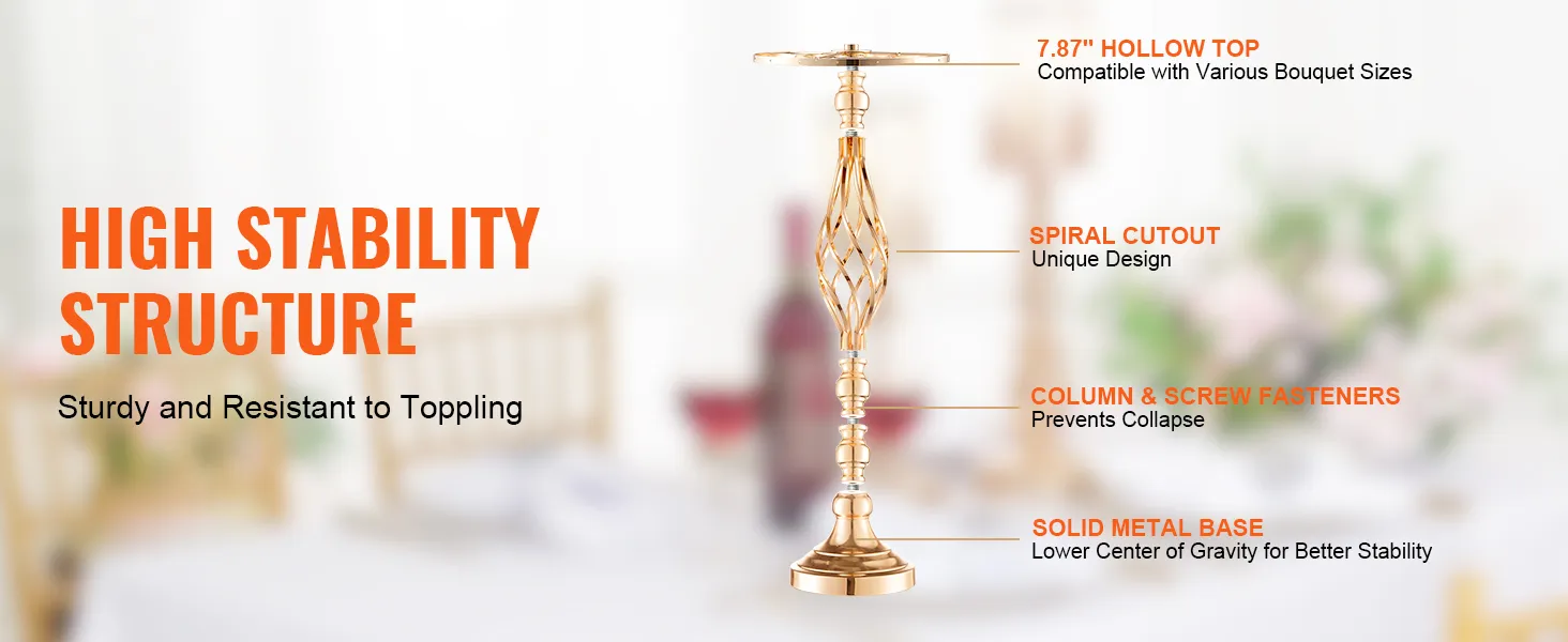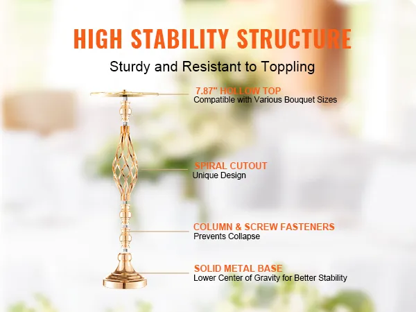 Hoogwaardig materiaal: gemaakt van hoogwaardig koolstofstaal, deze bruiloftsbloemenstandaard is bestand tegen vervorming en duurzaam. Het oppervlak is behandeld met een Frans goudgalvanisatieproces, waardoor een heldere afwerking met levendige kleuren ontstaat die zowel aantrekkelijk als gemakkelijk schoon te maken is. Er wordt gebruik gemaakt van schroefverbindingen om vervorming van de pennen te voorkomen en zo voor meer stabiliteit na montage te zorgen.