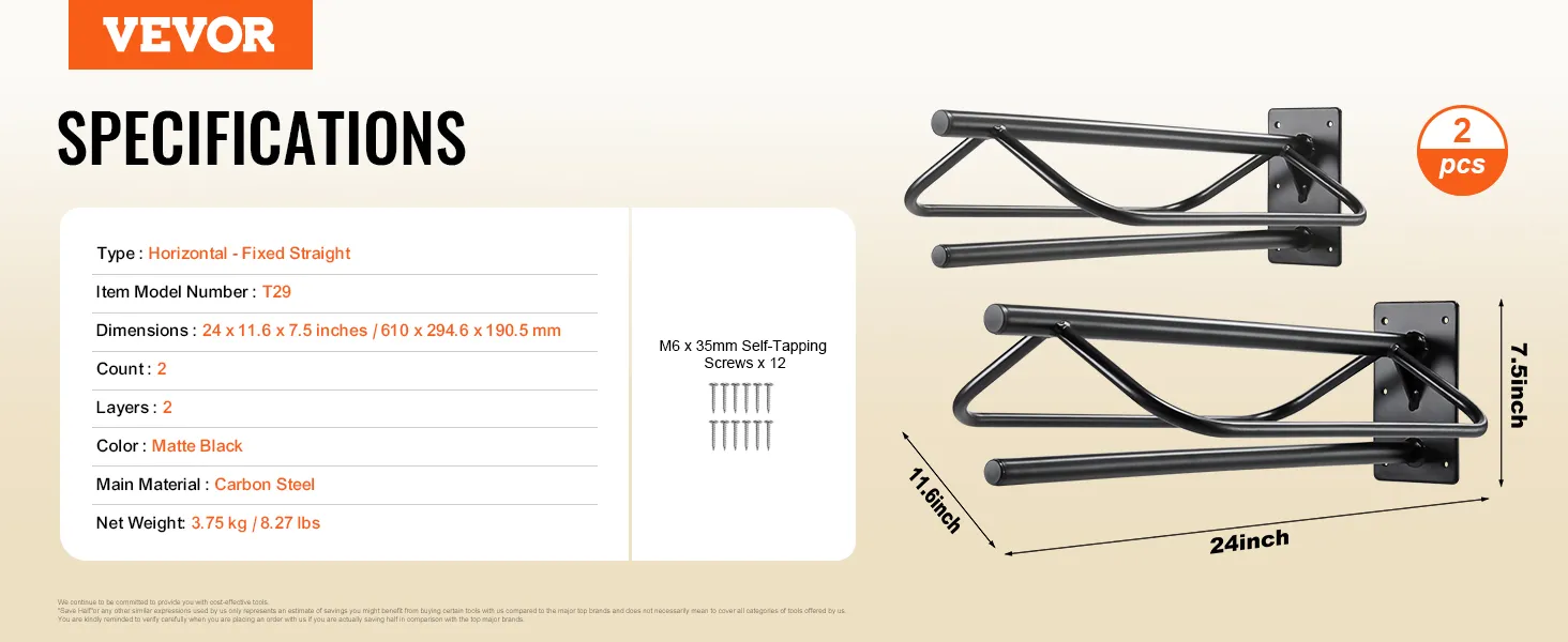 VEVOR 2 Packs Wall Mounted Saddle Rack 23.8x 12.6 x 10.2 in