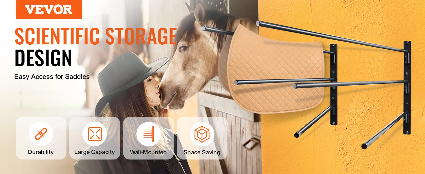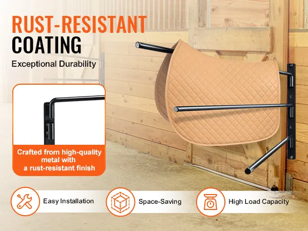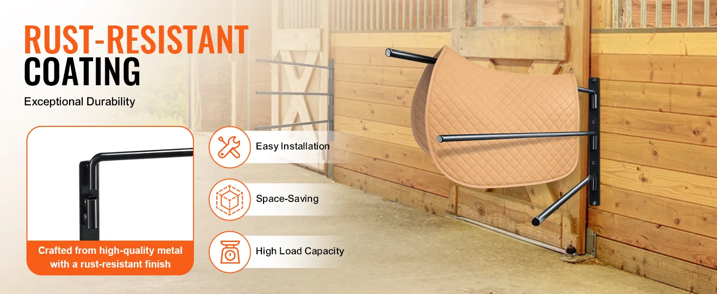Easy Installation: Equipped with all necessary parts and clear installation instructions, this horse saddle rack simplifies setup into just four easy steps—so you can start using it right away!