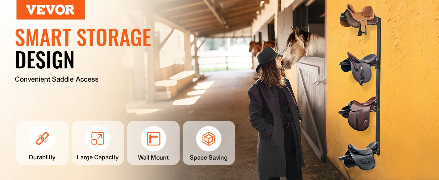 VEVOR Zadelrek voor aan de muur, vierlaags opbergrek voor paardenzadels, robuuste western- en Engelse zadelstandaard, paardendekenhouder voor het organiseren van de zadelkamer