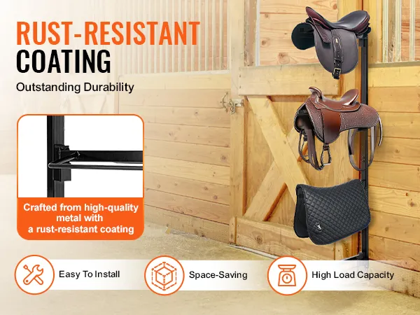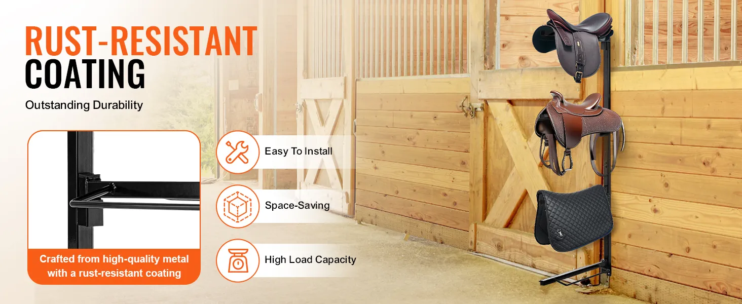 Hoogwaardige materialen: dit zadelrek is gemaakt van hoogwaardig koolstofstaal met volledig laswerk en een roestbestendige afwerking en is ontworpen voor duurzaamheid en een lange levensduur.