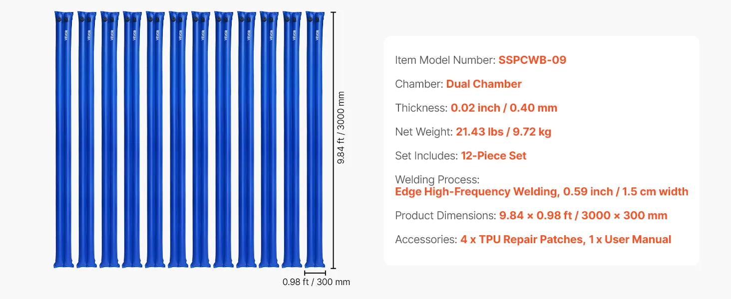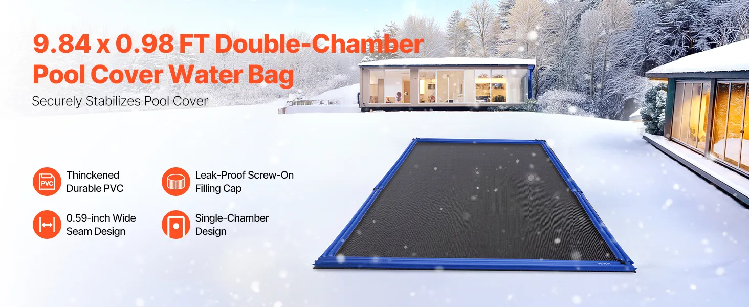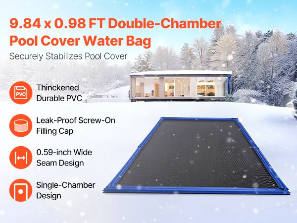 Verbeter de winterveiligheid van uw zwembad: deze 12-pack waterzakken voor zwembadafdekkingen met dubbele kamer (3000 x 300 mm) biedt betrouwbaar gewicht en beschermt uw zwembadafdekking tegen vuil en windinfiltratie in de winter. Deze waterzakken zijn ideaal voor ingegraven zwembaden en zijn gemakkelijk te vullen, te legen en op te bergen, waardoor u tijd bespaart met schoonmaken in de winter.