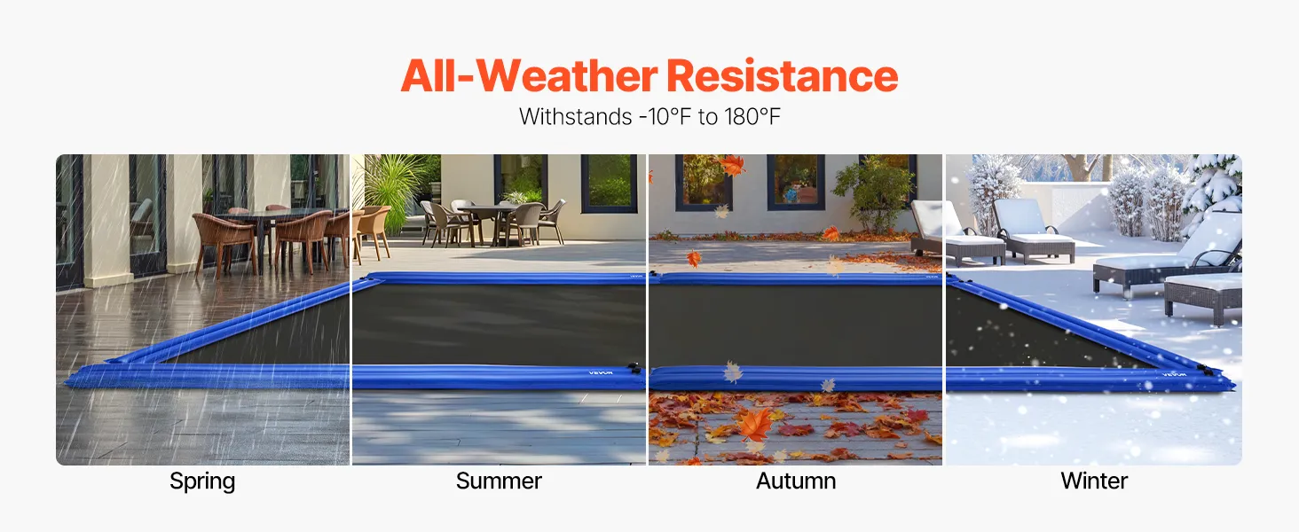 De verzwaarde waterzakken voor zwembadafdekkingen zijn ontworpen om bestand te zijn tegen extreme zonlicht en kou en scheuren niet bij warm weer. Ze worden niet hard, zelfs niet bij temperaturen onder het vriespunt. Betrouwbaar voor buitengebruik het hele jaar door.