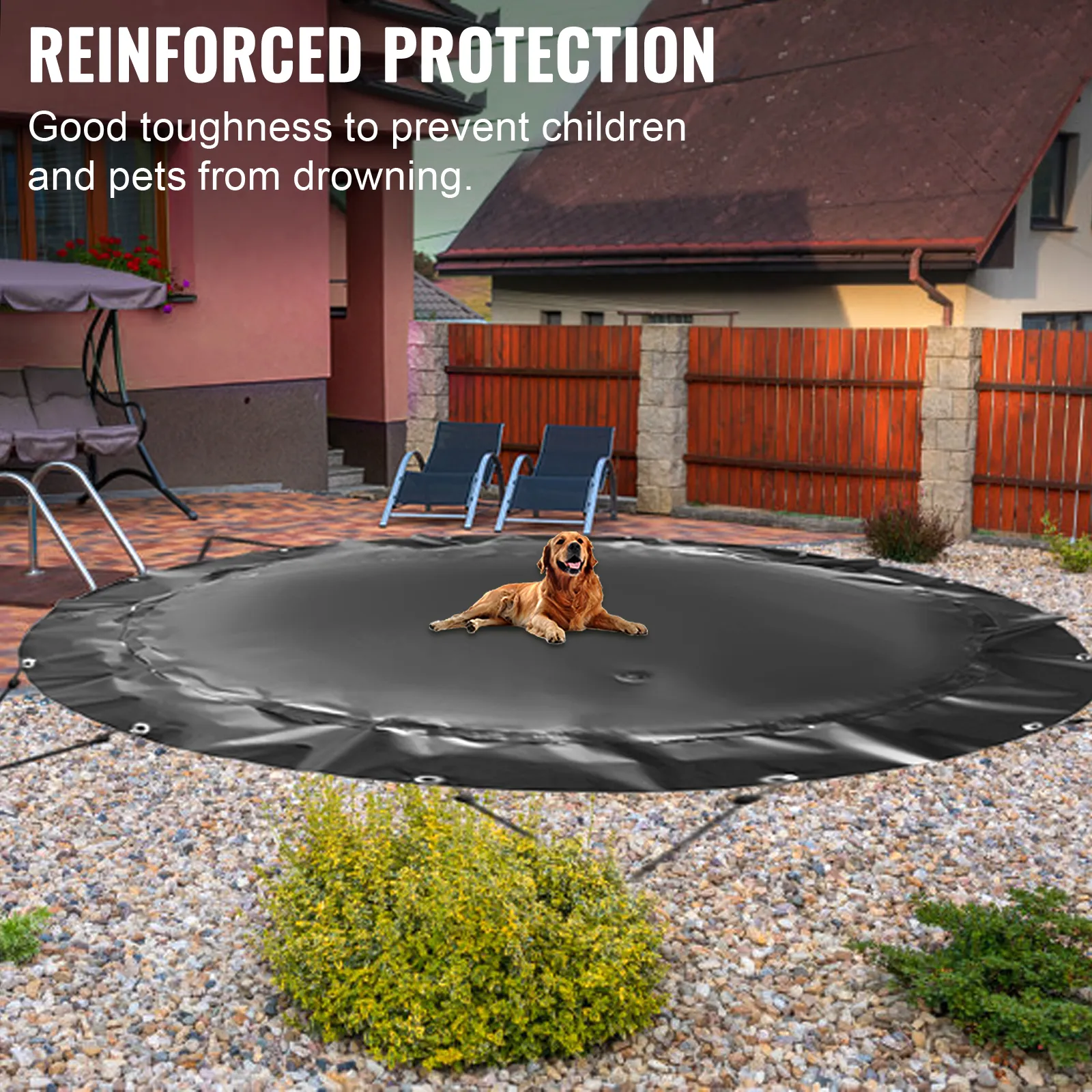 De duurzame zwembadafdekking is gemaakt van 100% waterdicht materiaal met een goede taaiheid. Het kan een betere bescherming bieden om te voorkomen dat kinderen en huisdieren verdrinken.