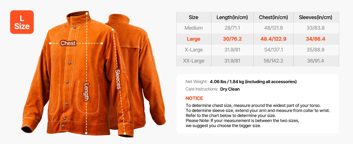 • Versatile Use: Ideal for welders, fitters, steelworkers, electricians, and other industrial workers, this heavy-duty leather safety jacket is available in M/L/XL/XXL sizes, ensuring a comfortable fit for any body type. Choose the right size to help you tackle heavy-duty tasks with ease and confidence.