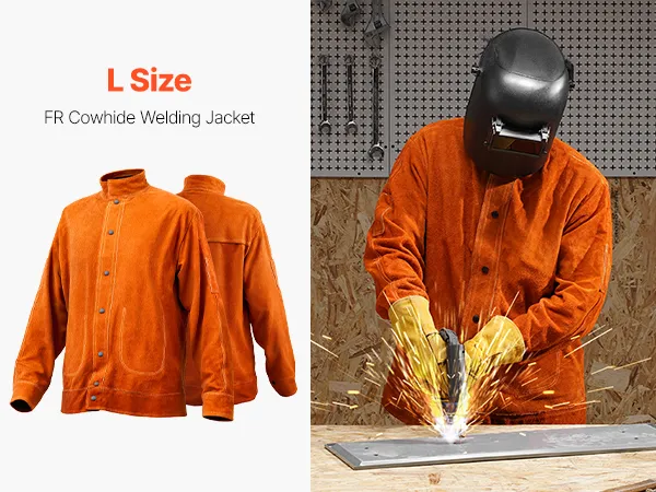 VEVOR Flame-Resistant Welding Jacket - L Size, Heavy Duty Cowhide Leather Welding Jacket, Waterproof Heat-Resistant Safety Jacket with Snap Buttons, 4 Pockets & Adjustable Cuffs for Welders Steelworks VEVOR Flame-Resistant Welding Jacket - L Size, Heavy Duty Cowhide Leather Welding Jacket, Waterproof Heat-Resistant Safety Jacket with Snap Buttons, 4 Pockets & Adjustable Cuffs for Welders Steelworks