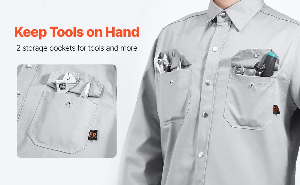 Blijf veilig en comfortabel met onze 7 oz. FR lasjas van zuiver katoen. Het is vlamvertragend, ademend en machinewasbaar en biedt betrouwbare bescherming tegen vonken en vlammen. Met verstelbare manchetten, stevige metalen drukknopen en 2 praktische zakken is dit uw ideale laspartner.