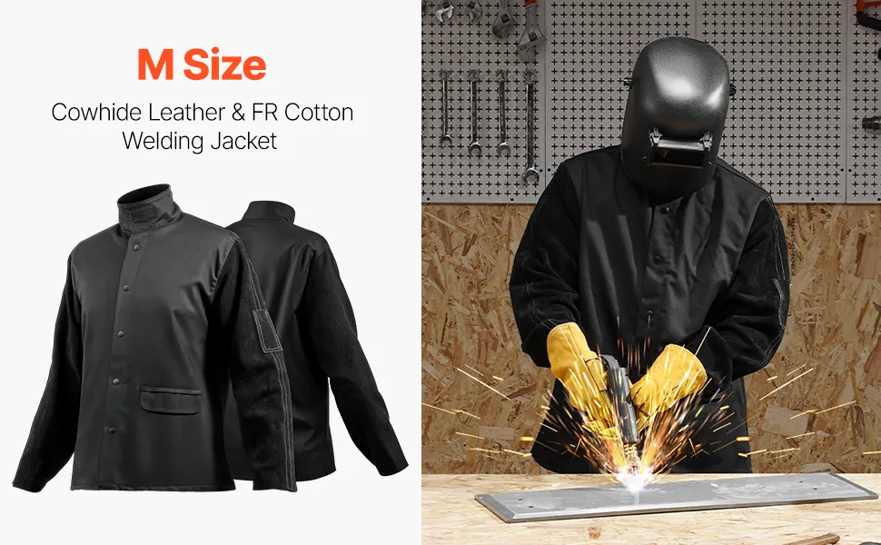 VEVOR vlamvertragende lasjas, mouwen van rundleer, vlamvertragend hoofdgedeelte van puur katoen, hittebestendige lasveiligheidsjas voor lassers en monteurs - maat M