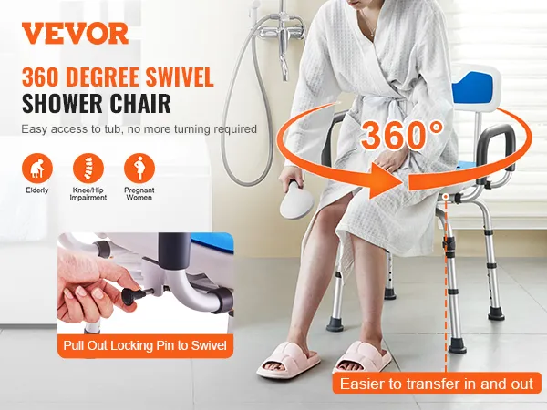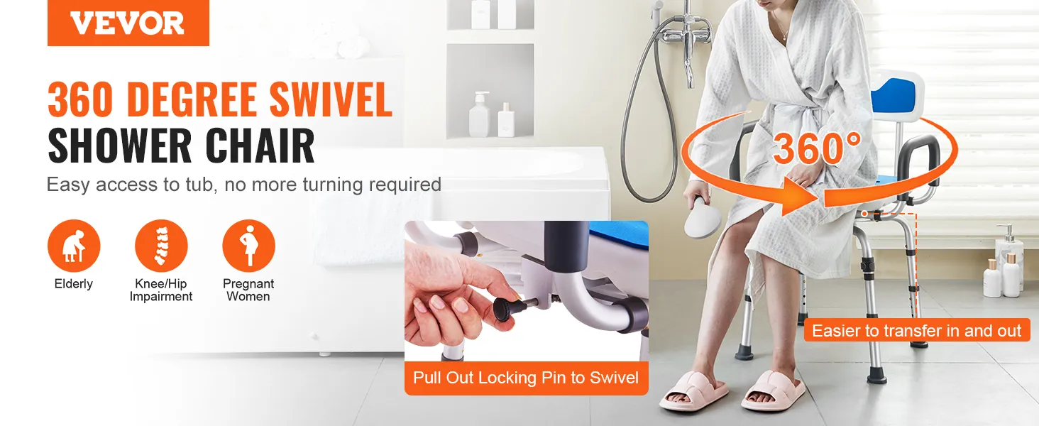 Maak je douche veiliger en comfortabeler met de 360° draaibare douchestoel van VEVOR. Dit douchezitje is perfect voor senioren, gehandicapten en zwangere vrouwen en beschikt over een 360° draaibare zitting, 4 verstelbare hoogte-instellingen en een draagvermogen van 180 kg.