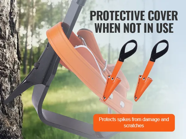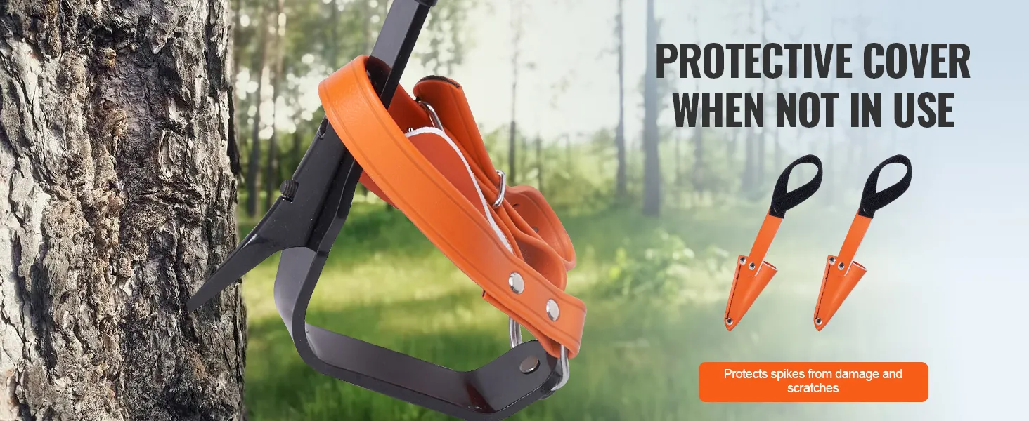 The spike protectors on the tree climbing spike set reduce friction between the spikes and external surfaces, minimizing the risk of damage and extending the tool's lifespan.