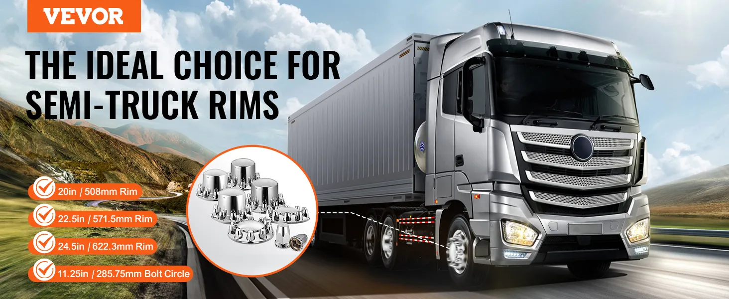 Ongeacht of uw vrachtwagen is uitgerust met velgen van 508 mm, 571,5 mm of 622,3 mm of een boutcirkel van 285,75 mm, deze opleggerasafdekking geeft uw voertuig een persoonlijke uitstraling en zorgt ervoor dat uw vrachtwagen op straat opvalt.