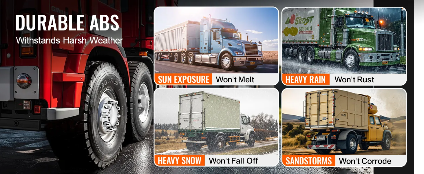 Deze wielmoerdoppen zijn gemaakt van duurzaam ABS-materiaal en blijven intact, zelfs bij extreme weersomstandigheden zoals zonlicht, zware regen, sneeuw en zandstormen. Ze beschermen uw truck betrouwbaar, zelfs onder zware omstandigheden.