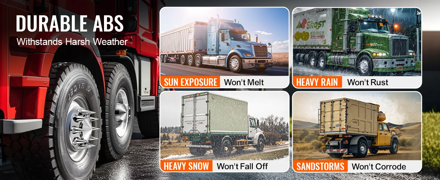 • Durable and Long-Lasting: Made from high-quality ABS material, the wheel covers for semi truck are lightweight yet extremely durable and rust-resistant. They maintain stability under high-intensity use, ensuring your axle and lug nuts are protected from external damage.