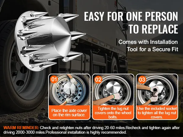 VEVOR Rear Front Axle Wheel Covers, Spiked Axle Cover for Semi Truck, ABS Rust-Resistant Lug Nut Covers, Universal Fit, Installation Tool Included, 2 Front and 4 Rear Axle Hub Covers Combo Kit VEVOR Rear Front Axle Wheel Covers, Spiked Axle Cover for Semi Truck, ABS Rust-Resistant Lug Nut Covers, Universal Fit, Installation Tool Included, 2 Front and 4 Rear Axle Hub Covers Combo Kit