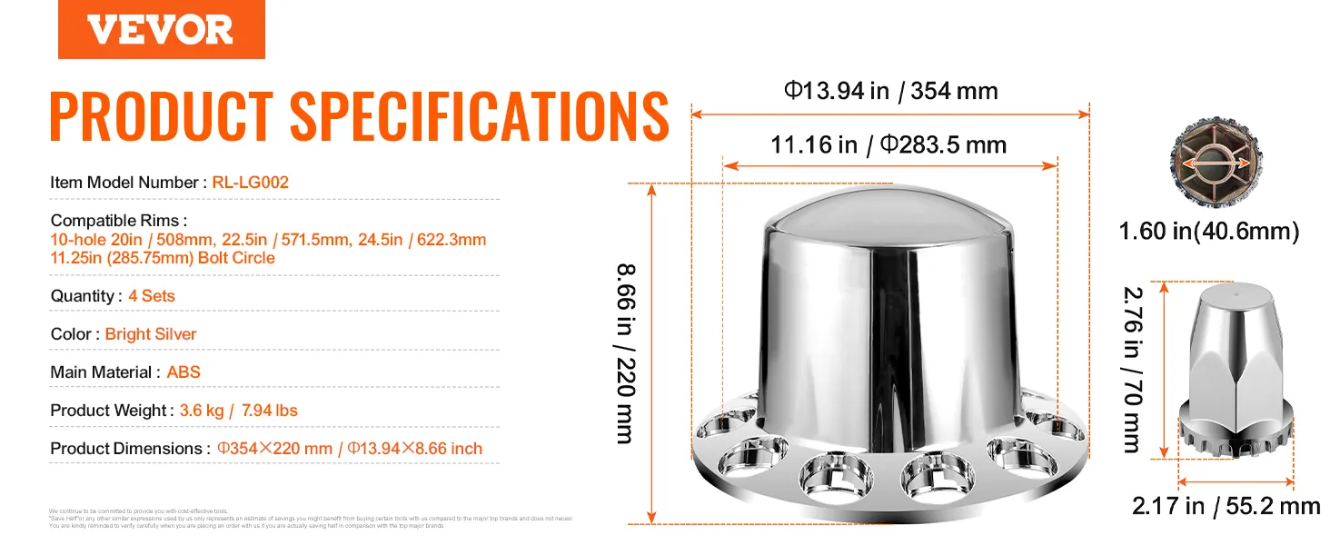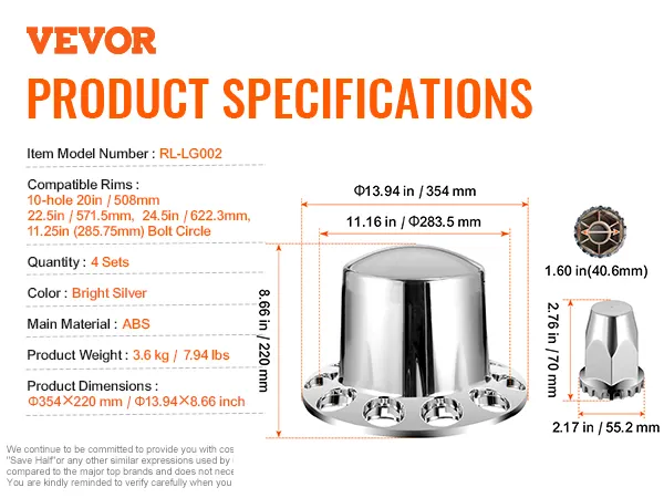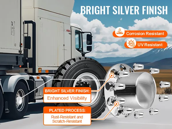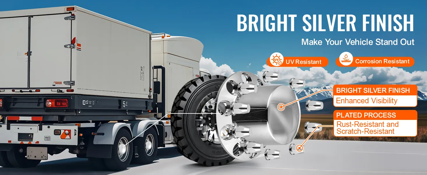 VEVOR Rear Axle Wheel Covers, Dome Axle Cover for Semi Truck, ABS Electroplate Rust-Resistant Lug Nut Covers, Universal Fit, Installation Tool Included, Complete Axle Cover Combo Kit VEVOR Rear Axle Wheel Covers, Dome Axle Cover for Semi Truck, ABS Electroplate Rust-Resistant Lug Nut Covers, Universal Fit, Installation Tool Included, Complete Axle Cover Combo Kit