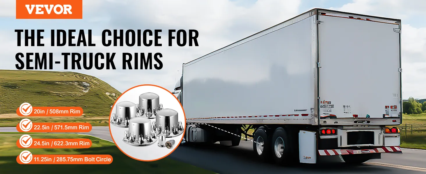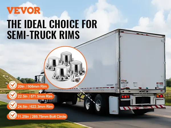 • Compatible with Multiple Rim Sizes: The complete axle cover combo kit fits various rim sizes, including 10-hole 20in, 22.5in, and 24.5in rims. This ensures easy installation regardless of your semi-truck model.