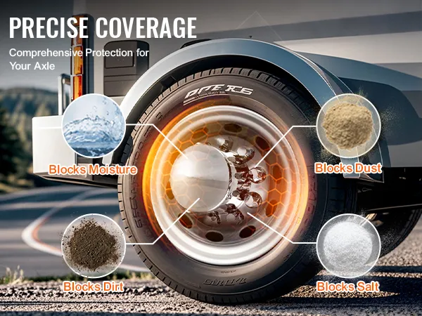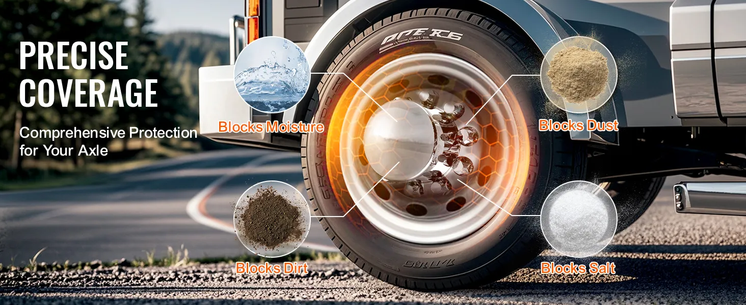 This complete axle cover combo kit provides full protection for your axle, effectively blocking moisture, dust, dirt, and salt to extend the lifespan of your axle and lug nuts. The precise coverage design shields the axle from corrosion and wear, enhancing safety.