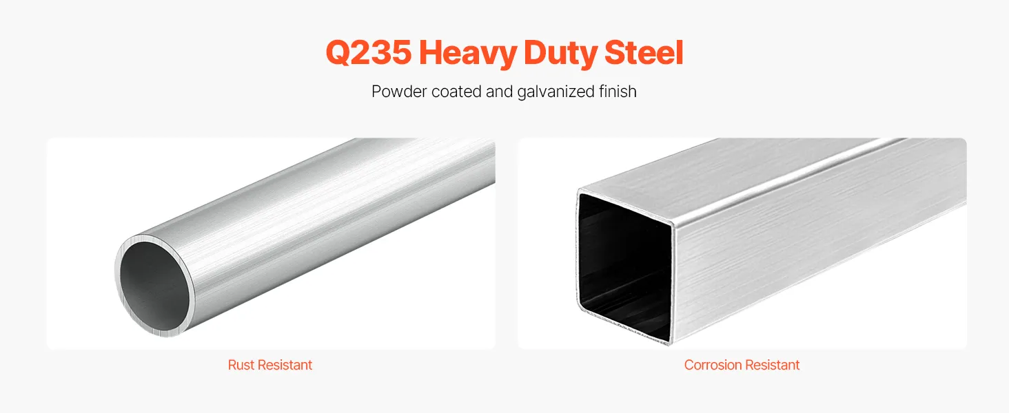 Deze bandenlagerstandaard is gemaakt van duurzaam, gepoedercoat en gegalvaniseerd Q235 staal en is roest- en corrosiebestendig. Hierdoor is het jarenlang duurzaam en betrouwbaar.