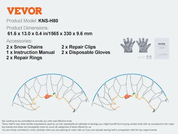 VEVOR Snow Chains-Winter Driving Safety Guardian
