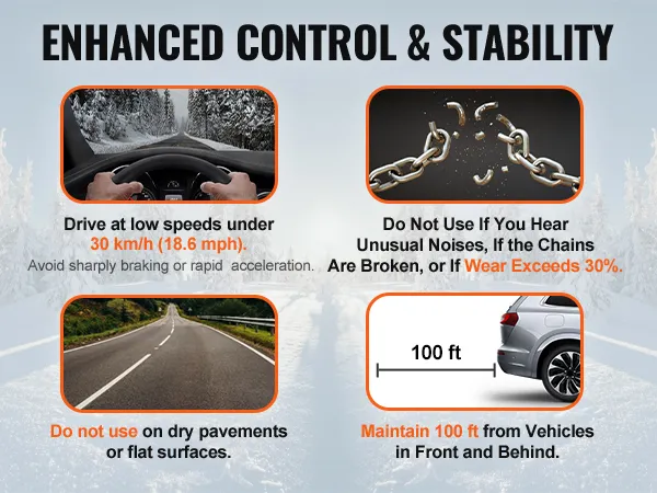 Safety Driving Tips: For safe winter driving, please maintain a low speed of no more than 30 km/h (18.6 mph) after installation. Avoid sudden braking or rapid acceleration to ensure optimal performance and safety.