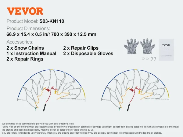 VEVOR Snow Chains-Winter Driving Safety Guardian