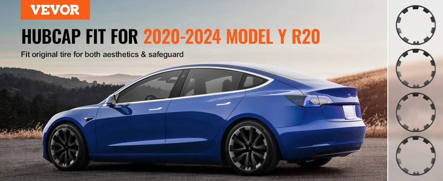 VEVOR Velgdeksel Wieldoppen 20 inch Model Y Volledig Passende Wieldop met Drukknoop Beschermtape Ventiel Sproeiergat, ABS en PC Wieldop met Hoge Stijfheid en Minder Windweerstand