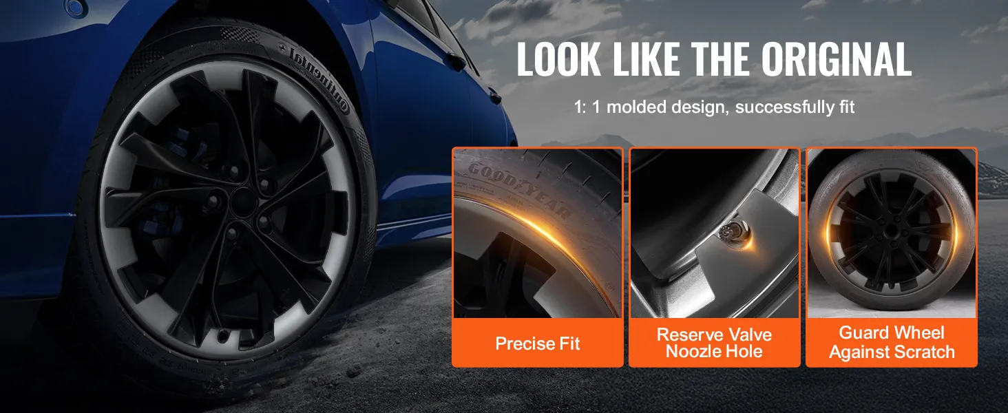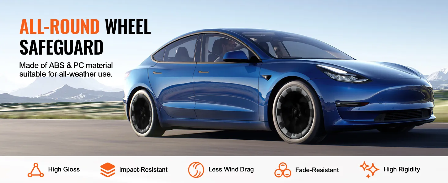 Volledige bescherming: de wieldop is gemaakt van duurzaam PC+ABS-materiaal om krassen door stoepranden en straatvuil te voorkomen. Het is zowel esthetisch als veilig. Het biedt langdurige bescherming, is roestbestendig, waterdicht, ijs- en sneeuwbestendig, hittebestendig en geschikt voor buitengebruik.