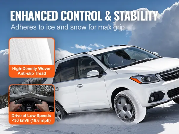 Featuring a 3D woven anti-slip pattern, these snow socks significantly boost traction and grip. They maintain stable steering and handling on snow and icy roads, quickly breaking through ice for a secure drive.