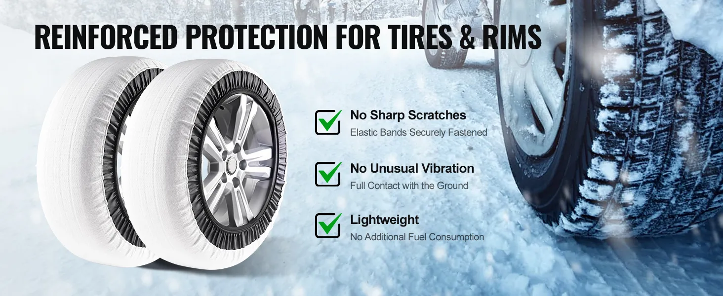 The soft, thickened material fully protects your rims and tires, preventing damage and wear while driving on snow or other harsh conditions.