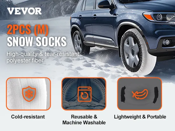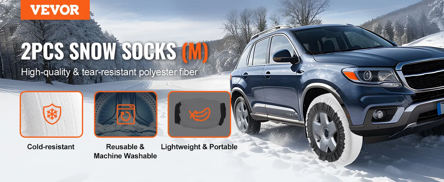 Our snow tire socks fit cars, SUVs, and trucks. Please measure your tire size to select the correct snow socks, and ensure a tight fit for safety and durability.