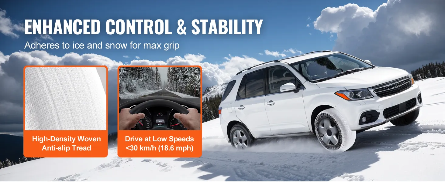 Robust Anti-slip Traction: Designed for emergency driving on snowy and icy roads, the tire socks have a three-dimensional woven pattern on the surface that ensures excellent grip. This design enhances stability, reduces skidding, and minimizes vibrations and noise for a smooth driving experience.