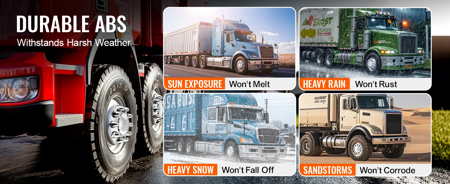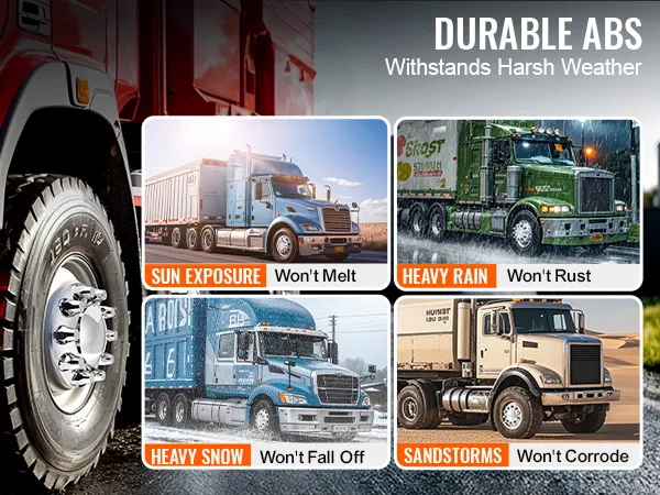 Deze wielmoerdoppen zijn gemaakt van duurzaam ABS-materiaal en blijven intact, zelfs bij extreme weersomstandigheden zoals zonlicht, zware regen, sneeuw en zandstormen. Ze beschermen uw truck betrouwbaar, zelfs onder zware omstandigheden.