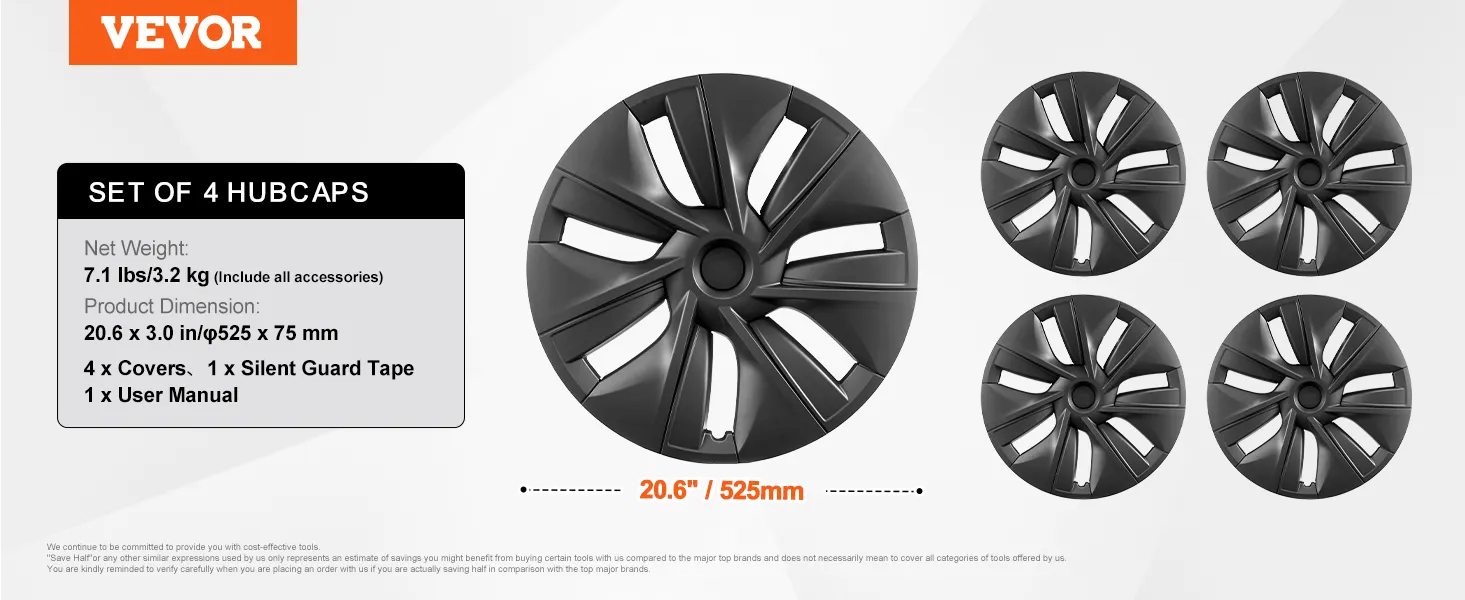 Deze wieldoppen zijn gemaakt van duurzaam ABS+PC-composietmateriaal en bieden uitstekende slag- en slijtvastheid. Elke wieldop is 1:1 gegoten om betrouwbare bescherming te bieden en tegelijkertijd het uiterlijk van uw voertuig te verbeteren.