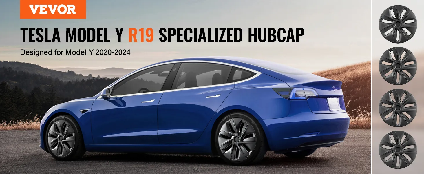 VEVOR Wieldoppen Wielnaafdoppen Velgdeksel Model Y 2020-2023 voor 19 inch wiel, wieldop met drukknoop en beschermtape en ventielgat, ABS en PC wieldop met hoge stijfheid en weerbestendig