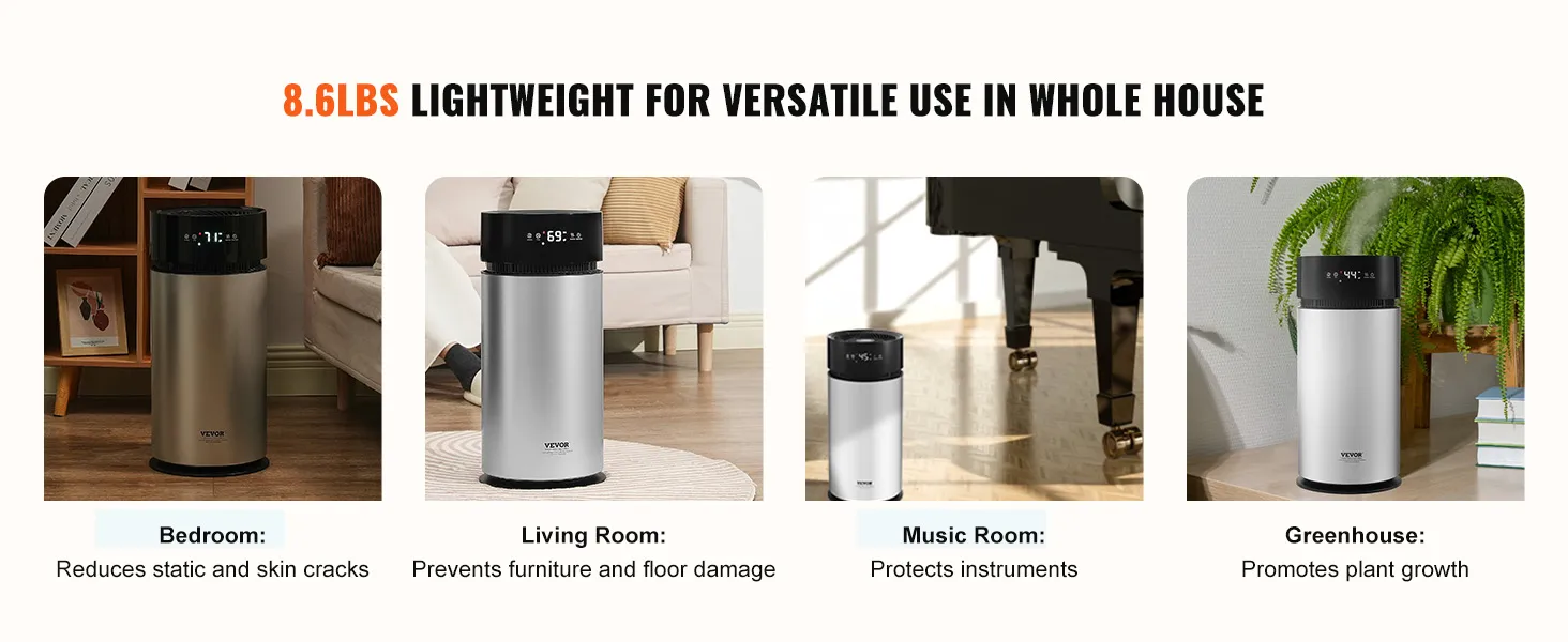 Door het lichte gewicht kunt u zich gemakkelijker verplaatsen, of het nu in de slaapkamer, woonkamer, technische ruimte of pianokamer is, hij kan voldoen aan de bevochtigingsbehoeften van het hele huis.