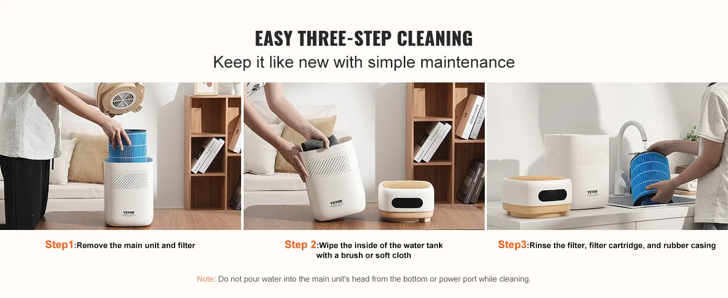 Het combineert filtratie en bevochtiging in één, waardoor u een mistvrije en bevochtigde luchtervaring krijgt. Meer geschikt voor mensen met een gevoelige neus, droge huid en hoesten.
