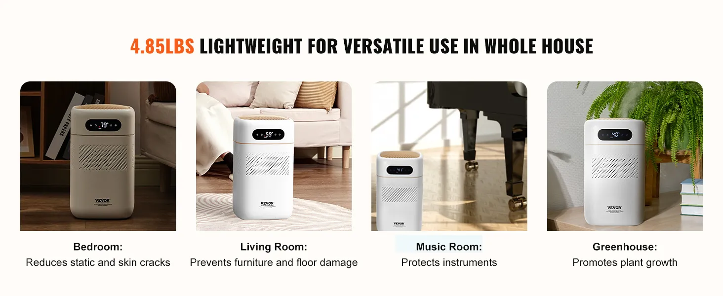 Door het lichte gewicht kunt u zich gemakkelijker verplaatsen, of het nu in de slaapkamer, woonkamer, technische ruimte of pianokamer is, hij kan voldoen aan de bevochtigingsbehoeften van het hele huis.