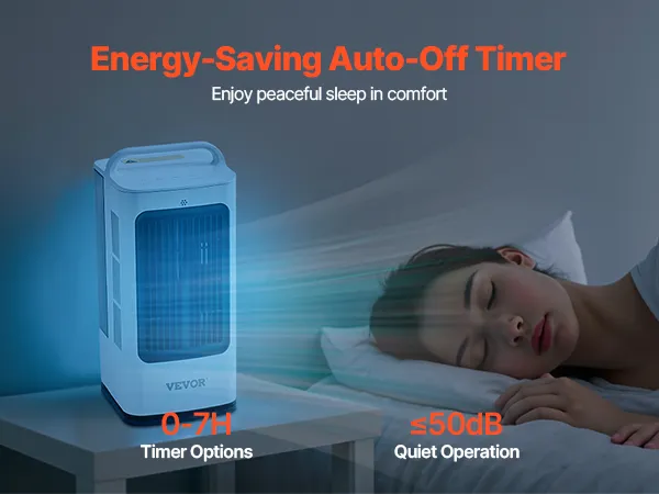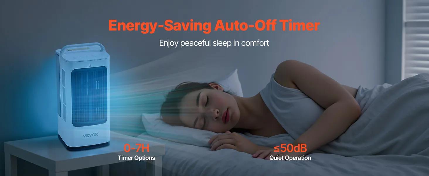 Energy-Saving Timer: The personal air conditioner features a 0-7 hour timer for automatic shut-off. This thoughtful design is perfect for nighttime use or short absences, ensuring you don’t have to worry about forgetting to turn it off, providing both convenience and energy savings.