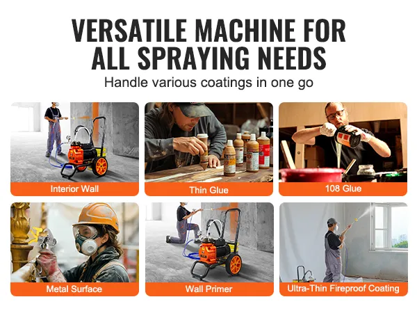 Onze airless verfspuit is bijzonder geschikt voor het spuiten van oppervlakken zoals muren, plafonds en meubels. Het realiseert moeiteloos efficiënte, uniforme en hoogwaardige coatings op grote oppervlakken.