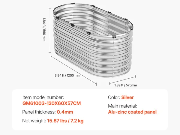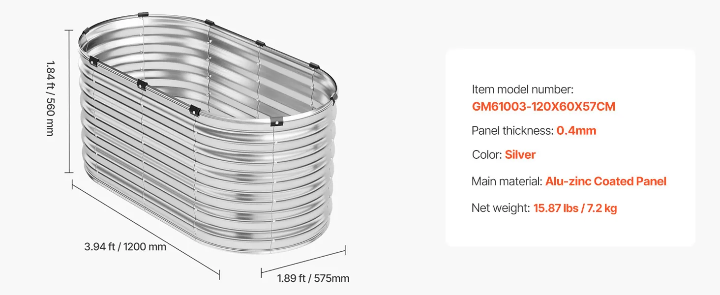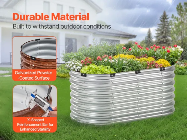 VEVOR Metal Raised Garden Bed, 4 x 2 x 2 ft Outdoor Galvanized Planter Box, with Open Bottom, Large Oval Planter Raised Bed for Gardening Vegetables, Flowers, Herbs, and Succulent Plants, Silver
