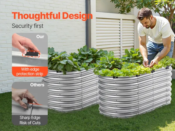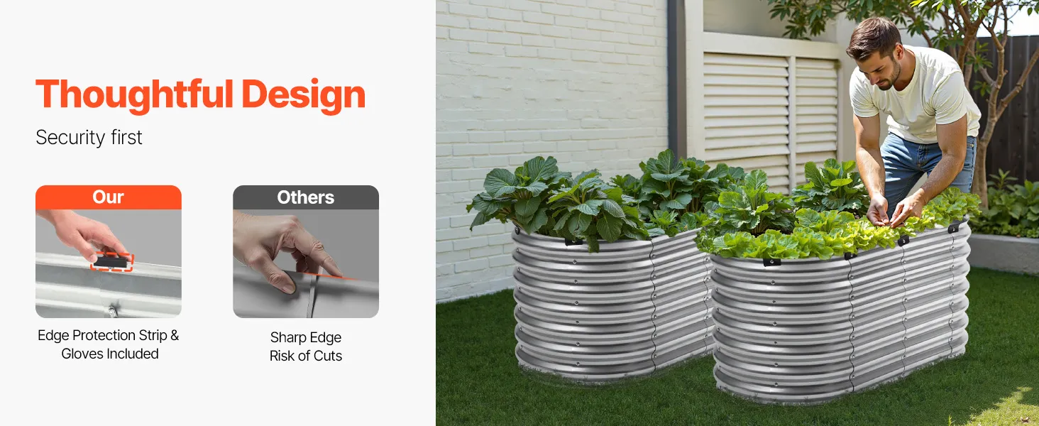 Secure to Use: To ensure your safety during use, our raised planter box features rolled edges with edge protectors to prevent hand injuries or scratches. Use with peace of mind and enjoy gardening effortlessly.